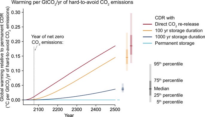 Brunner, C., Hausfather, Z., & Knutti, R. (2024). Durability of carbon dioxide removal is critical for Paris climate goals. Communications Earth & Environment, 5(1), 645.